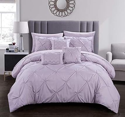 Amazon Com Chic Home Hannah 10 Piece Comforter Complete Bag Pinch Pleated Ruffled Pintuck Bedding With Sheet Set And Decorative Pillows Shams Included King Lavender Home Kitchen