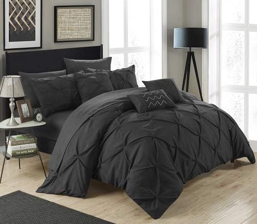 Amazon Com Chic Home 10 Piece Hannah Pinch Pleated Ruffled And Pleated Complete King Bed In A Bag Comforter Set Black With Sheet Set Home Kitchen