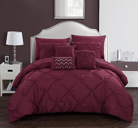Amazon Com Chic Home Hannah 10 Piece Comforter Complete Bag Pinch Pleated Ruffled Pintuck Bedding With Sheet Set And Decorative Pillows Shams Included Queen Burgundy Home Kitchen