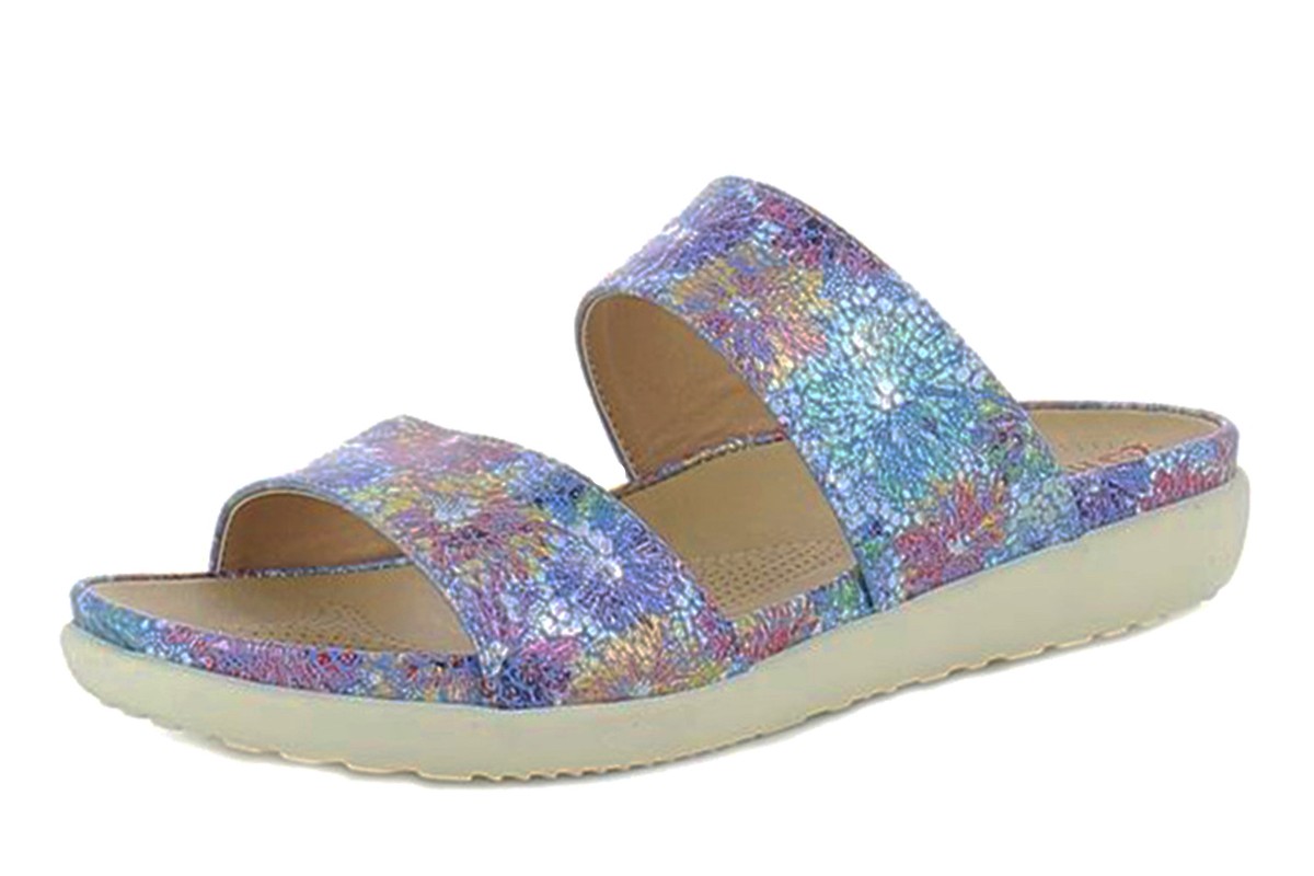 Heavenly Feet Dahlia Blue Mosaic Two Strap Comfort Slide Sandals Kissshoe