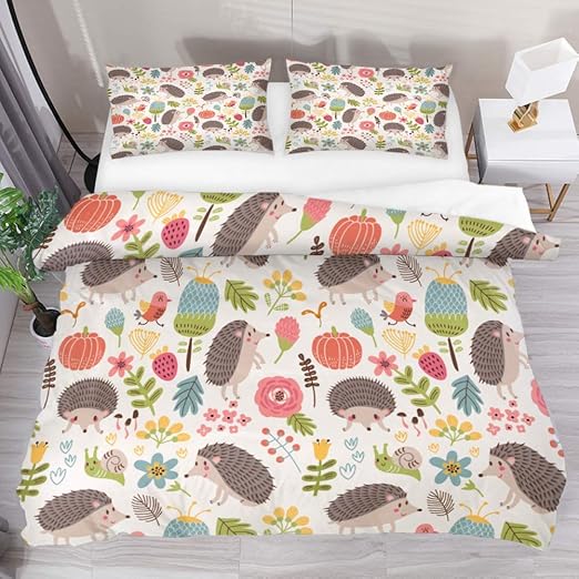 Amazon Com Duvet Cover Set Hedgehog Floral Cute Bird Printed Bedding Comforter Set With 2 Pillow Shams 3 Piece Soft Zipper For Kids Teen Boys Girls Twin Size Home Kitchen