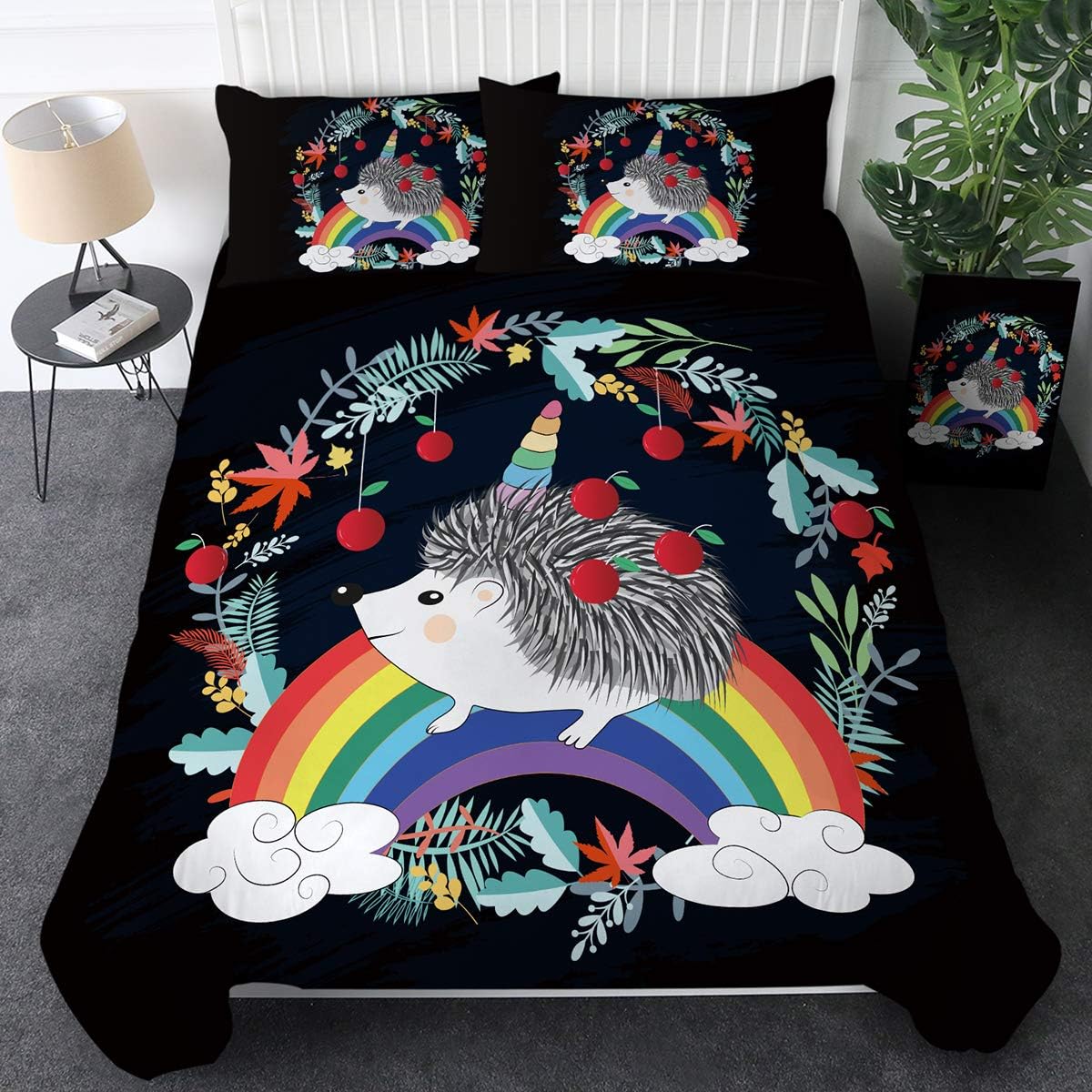 Amazon Com Sleepwish Hedgehog Bedding Duvet Cover Sets Cute Woodland Pattern Comforter Cover Set 3 Pieces Kids Girls Boys Black Cartoon Bedspreads Rainbow Hedgehog And Apples Twin Home Kitchen
