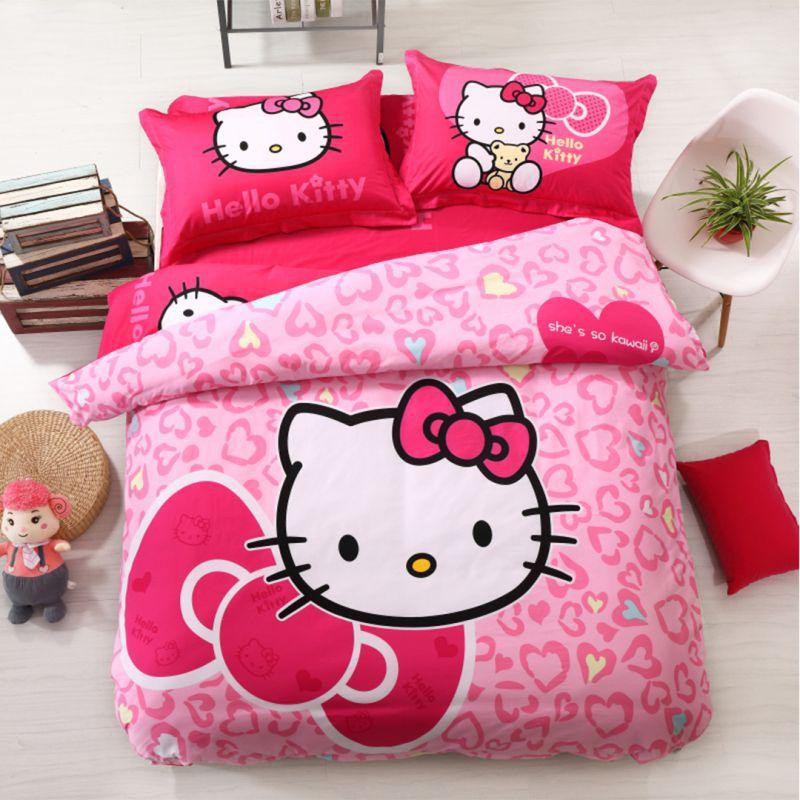 Home Textile Hello Kitty Bedding Set Cartoon Cotton Bed Set For Kids 4pcs Include Duvet Cover Bed Sheet P Hello Kitty Bed Hello Kitty Bedroom Hello Kitty Rooms