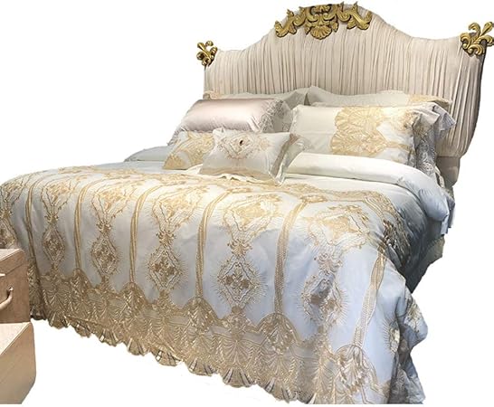 High End White Jacquard Faux Silk Comforter Sets Lace 4 Piece European Princess Style Sheets Quilt Duvet Cover Sets With 2 Pillow Shams White King Amazon Co Uk Kitchen Home