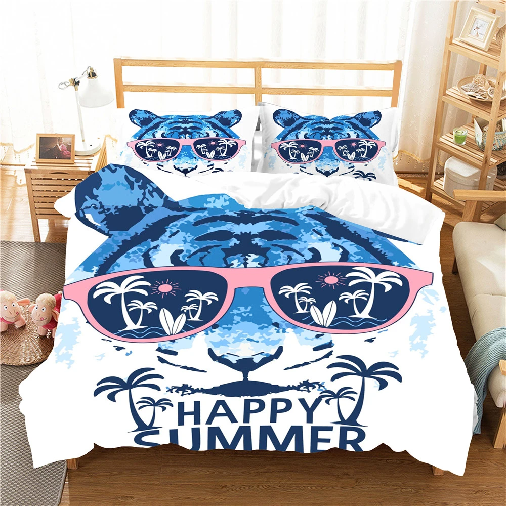 Happy Summer Holiday Comforter Cover Tiger With Glasses Cartoon Family Bedding Sets 2 3 Piece Tropical Home Bed Cover Pillowcase Bedding Sets Aliexpress