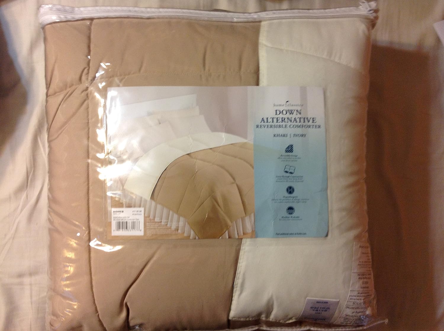 Amazon Com Home Classics Down Alternative Reversible Comforter Khaki Ivory Home Kitchen