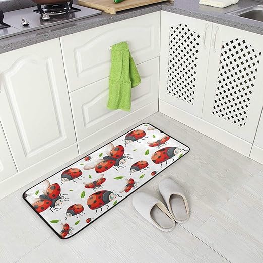 Amazon Com Kitchen Rugs Runner Cute Red Ladybug Pattern Leaves Comfort Floor Mat Bath Mats Bed Desk Bathroom Area Rug Long Doormat Carpet Home Hotel Kitchen Dining