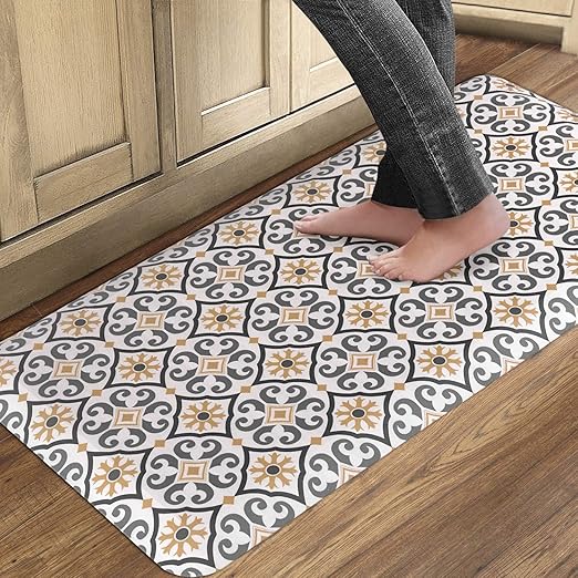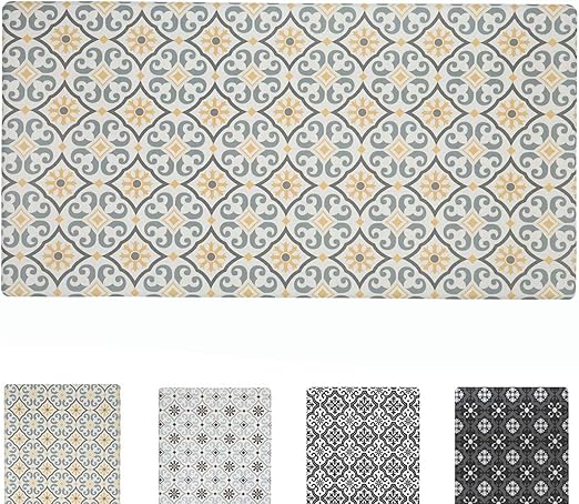Amazon Com Qsy Home Kitchen Anti Fatigue Floor Mats 20x39x1 2 Inch Comfort Standing Rugs For Laundry Bath Room Pvc Foam Bevel Edges Non Slip Waterproof Mats Grey Yellow Kitchen Dining