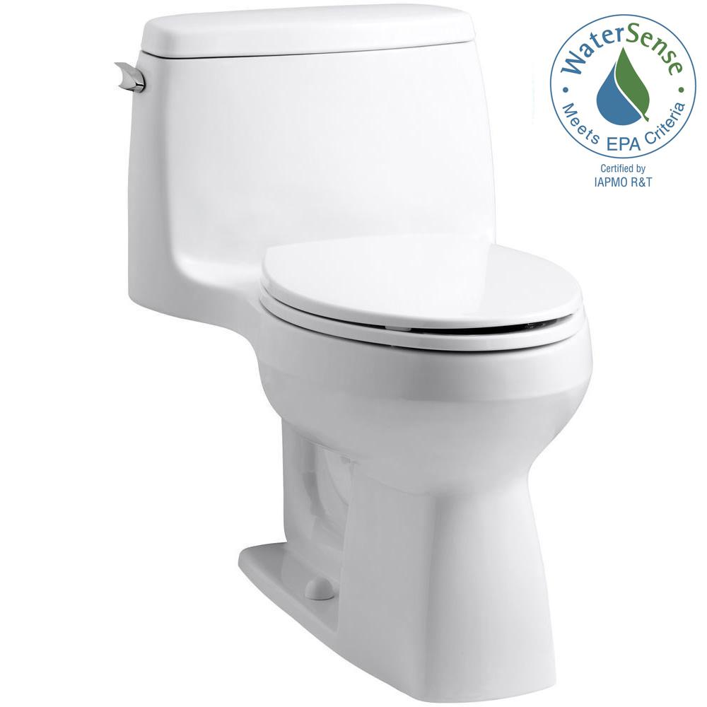 Kohler Santa Rosa Comfort Height 1 Piece 1 28 Gpf Single Flush Compact Elongated Toilet With Aquapiston Flush In White 3810 0 The Home Depot Kohler One Piece Toilets Water Sense