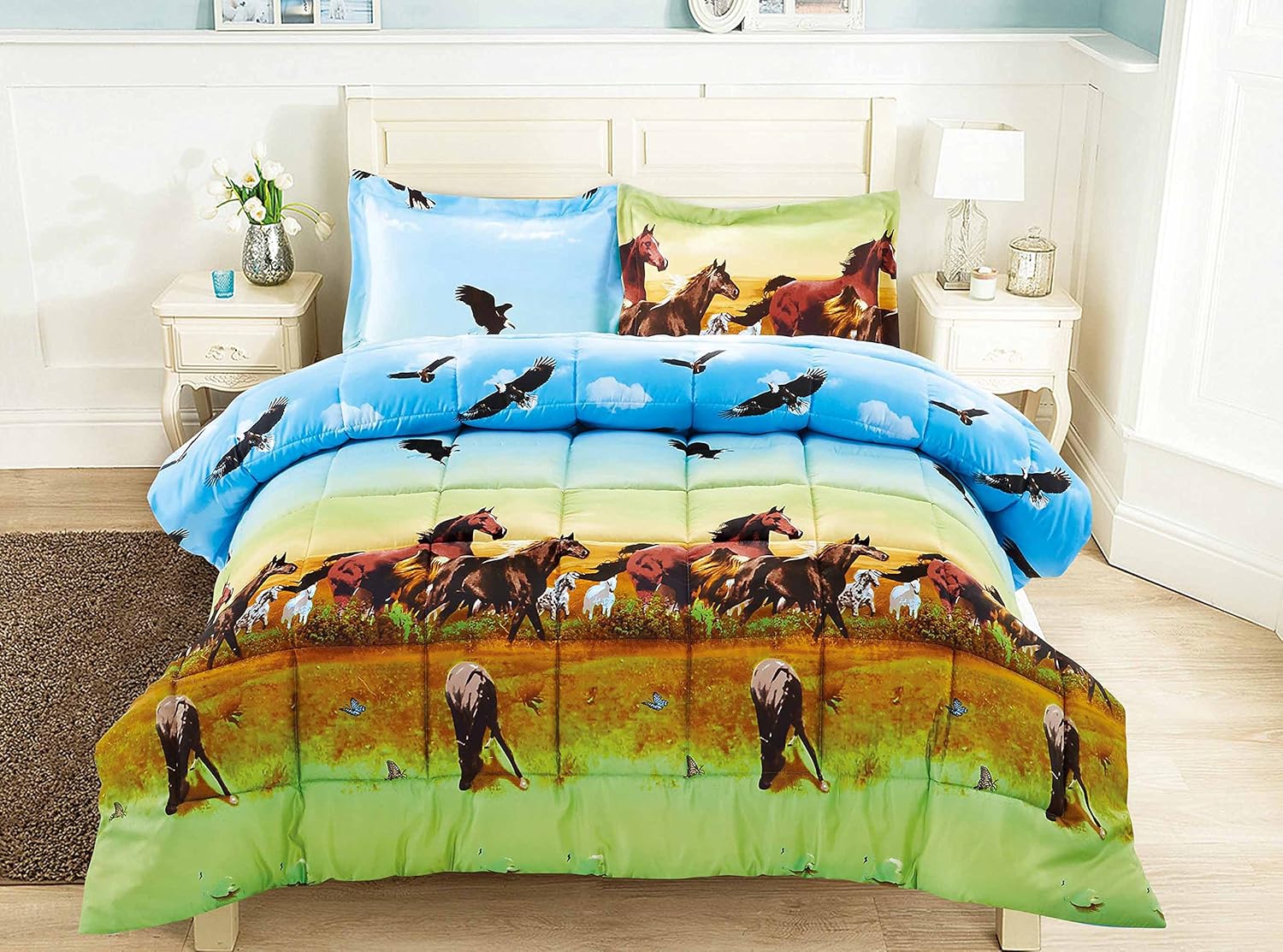 Amazon Com Bednlinens Hig 3d Comforter Set King 3 Piece 3d Horse And Eagle Printed Comforter Set King Size Y25 Box Stitched Soft Breathable Hypoallergenic Fade Resistant Includes 1 Comforter 2