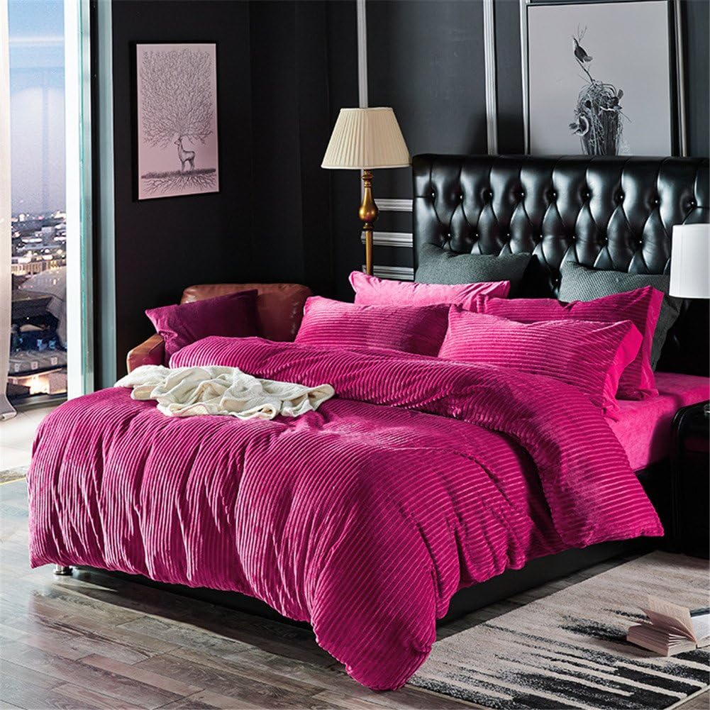 Amazon Com Simonshop Luxury Thick Coral Velvet Duvet Cover Set High Thread Count Bedding Collection 4pcs Hot Pink Queen Home Kitchen