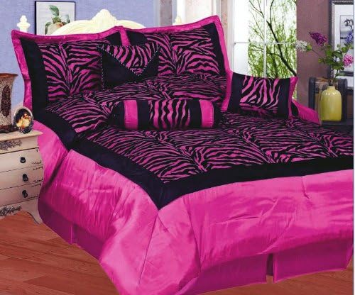 Empire Home Safari 7 Piece Hot Pink Queen Size Comforter Set On Sale Walmart Com Pink And Black Bedding Zebra Bedding Comforter Sets