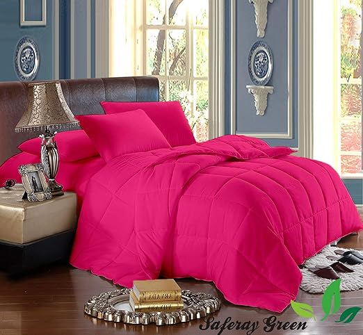 Amazon Com Saferay Green Hot Pink 3pc Comforter Set Queen Size 88 X 92 Inches 100 Organic Cotton Goose Down Alternative Ultra Soft Hypoallergenic All Season Breathable 500 Gsm Machine Washable Home Kitchen
