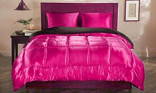Amazon Com Linen Club Bedding Ultra Soft Luxurious Satin 3 Piece Silky Satin Comforter Set Duvet Comforter 2 Pillowcases Twin Twin Xl Hot Pink Home Kitchen