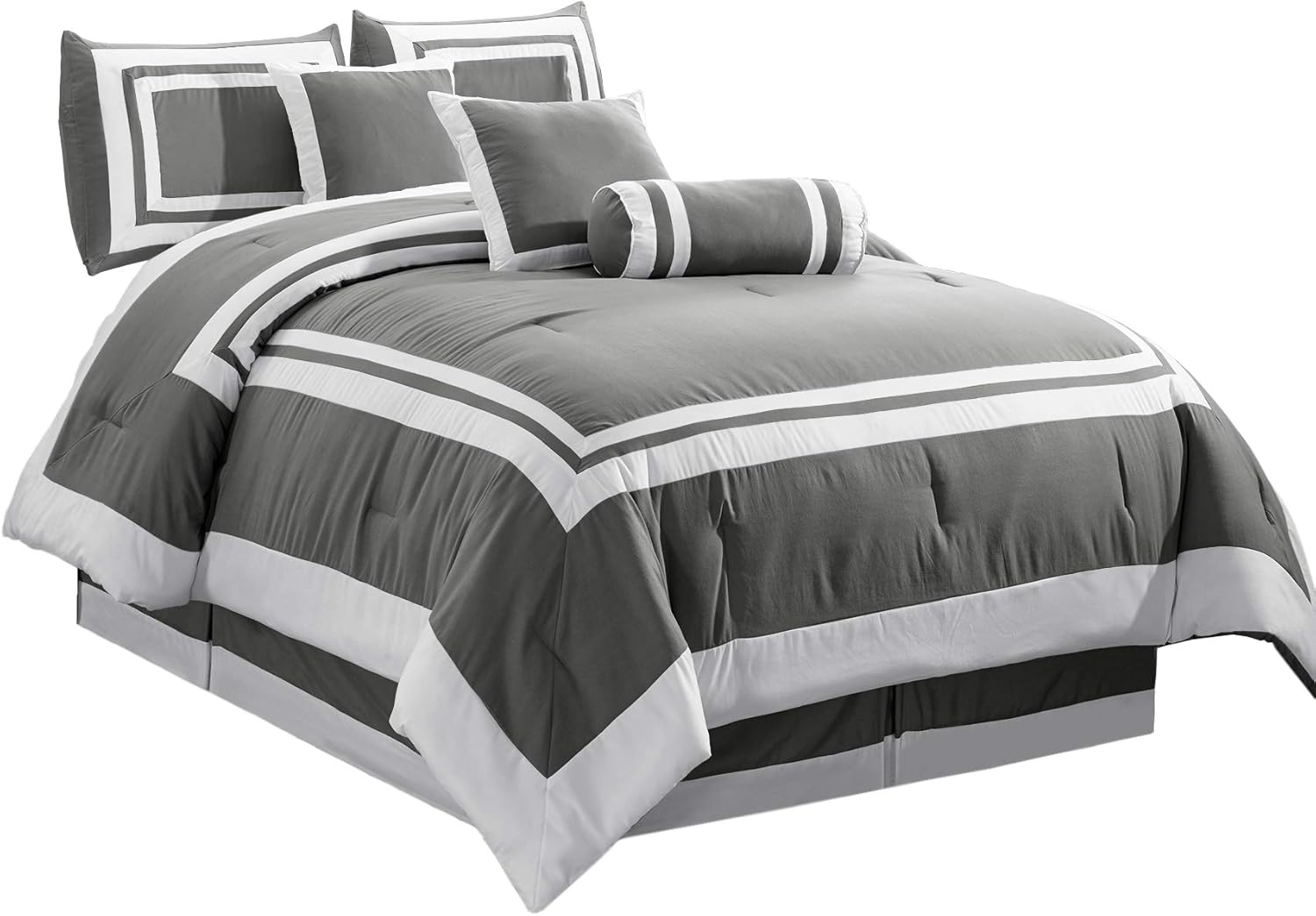 Amazon Com Chezmoi Collection 7 Pieces Caprice Gray White Square Pattern Hotel Bedding Comforter Set Queen Gray White Home Kitchen