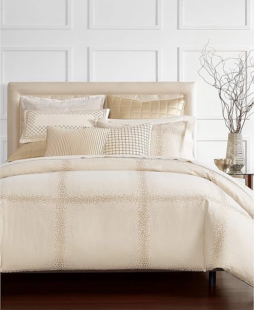 Amazon Com Hotel Collection Mosaic Grid Light Beige Embroidered Full Queen Comforter Home Kitchen