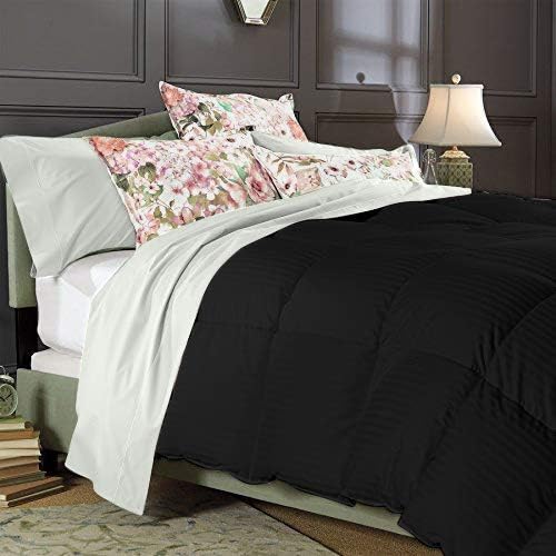 Amazon Com Hotel Grand 100 Pure Egyptian Cotton All Season Goose Down 1 Piece Twin Twin Xl Stripe Comforter By Fabricom 800 Thread Count Black Home Kitchen