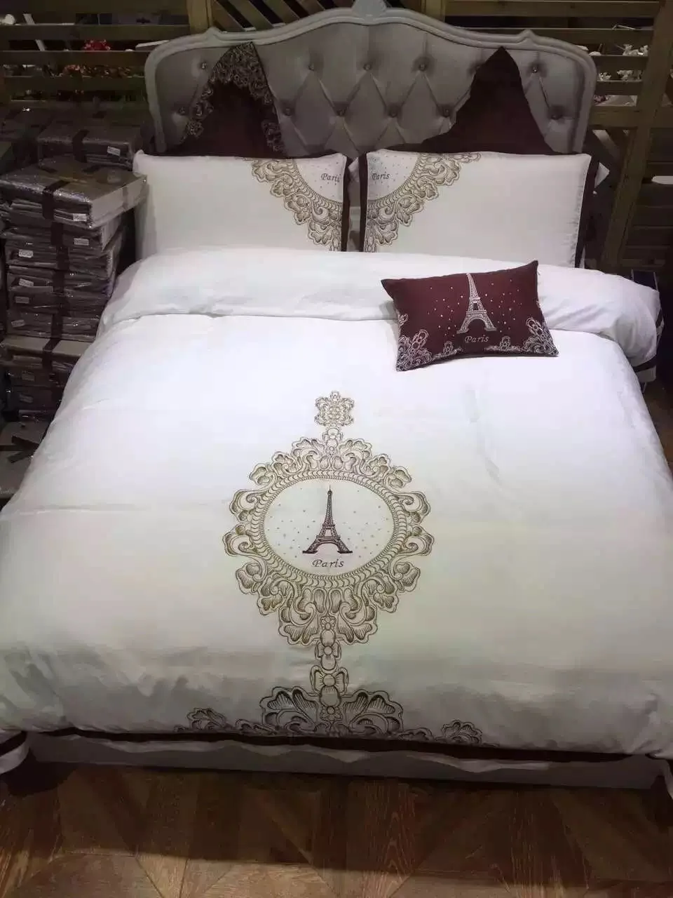 4pcs 100 Sateen Cotton 60s Luxury White Hotel Style Bedding Sets King Size With Classical Eiffel Tower Embroidered Duvet Cover Bedding Set Hello Kitty Bedding Brandset Casing Aliexpress