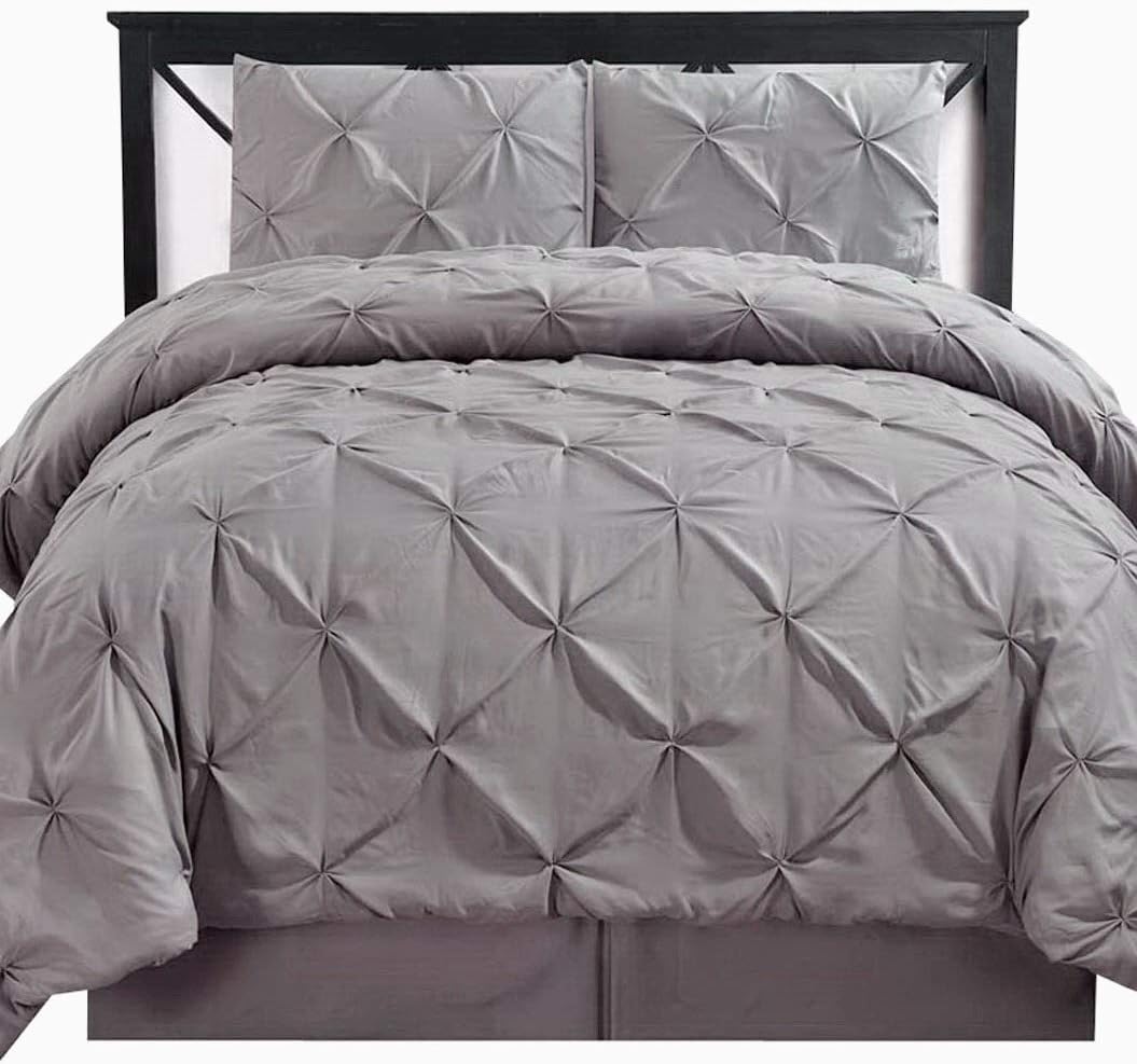 Amazon Com Hotel Style Comforter Set Brushed Microfiber 4 Piece Pinch Pleat Pintuck Luxury Modern Hypoallergenic All Season Soft Bedding With Pillow Shams And Bed Skirt Solid Grey Gray Oversized King Size
