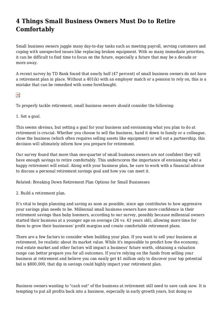 4 Things Small Business Owners Must Do To Retire Comfortably